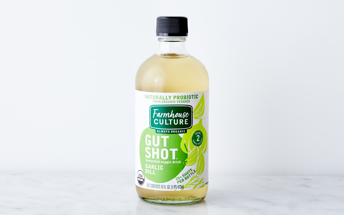 Our fans love Gut Shot for boosting energy digestive relief solving acid reflux fixing skin problems and more. Gut Shot is the only wellness shot powered by fermented organic vegetables thats cold-brewed and filtered to retain naturally probiotic benefits. The Farmhouse Cultures Garlic Dill Pickle Gut Shot makers boast their powerful probiotics have healing powers.